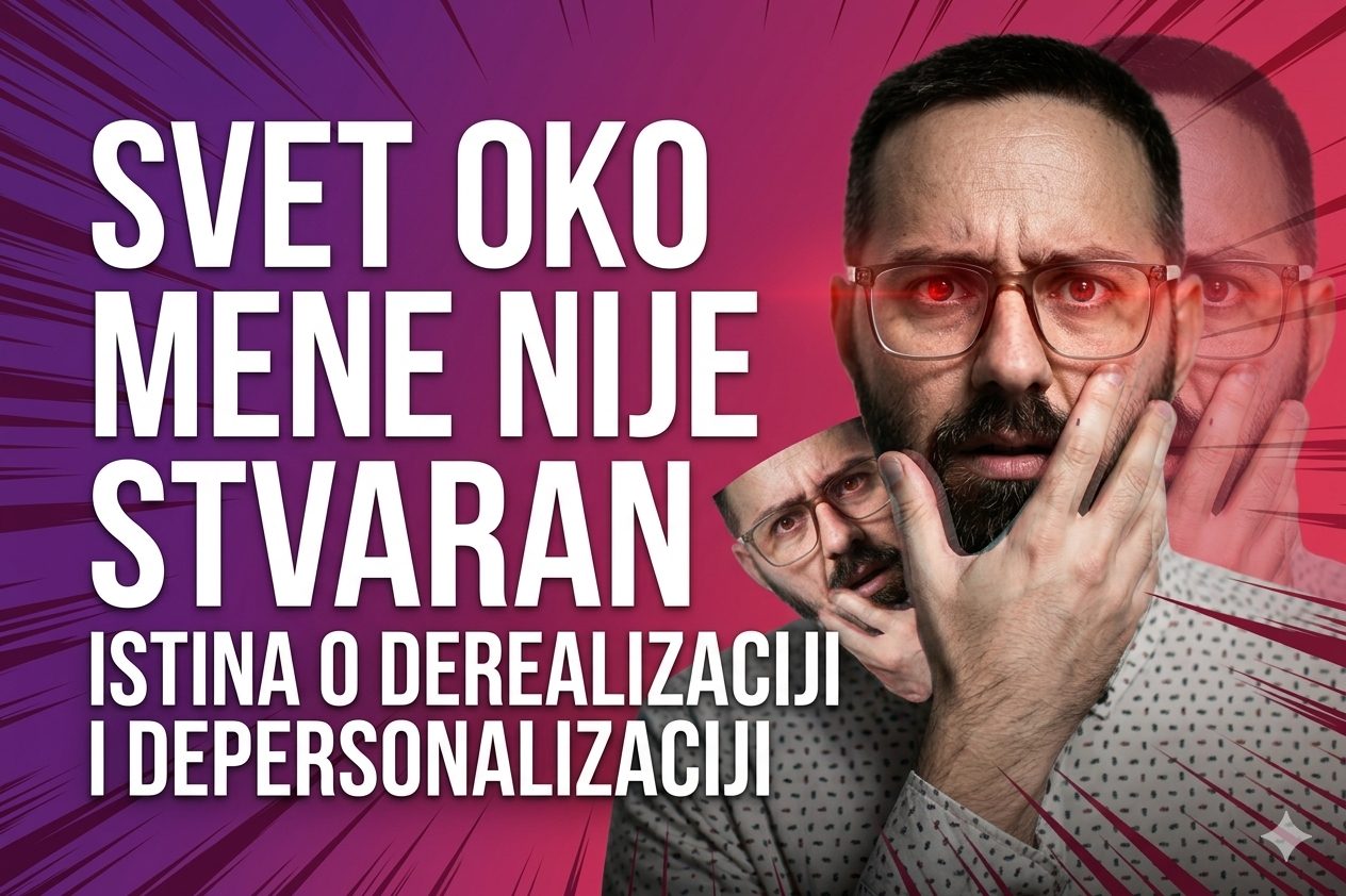 Depersonalizacija i derealizacija: Šta su, zašto nastaju i kako se leče? Ako ste ikada imali osećaj da gledate svet kroz staklo, kroz maglu, ili ste posmatrali sopstvene ruke pitajući se “da li sam to zaista ja”, niste sami i niste ludi. Ovi simptomi, iako bizarni i zastrašujući, predstavljaju mehanizme odbrane našeg uma. U ovom tekstu ćemo identifikovati ove fenomene, objasniti neurotski konflikt koji stoji iza njih i ponuditi horizontalna i vertikalna rešenja za izlečenje.